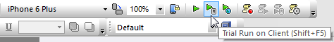 Once the client device is ready, the developer can start a Trial Run on Client from the Designer Project menu or from the handy toolbar:
