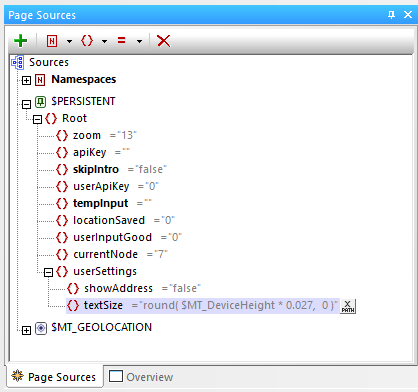 Instead of applying a default value to 20 pixels for the textSize element, we can create a function based on the MT_DeviceHeight global variable. Twenty divided by 736 is about 2.7 percent, so we will use that value to create an XPath function to set the initial textSize based on any client device: