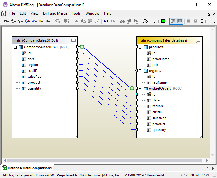 DiffDog, the unique XML-aware diff / merge tool from Altova, supports CSV as a native file format for comparison and can compare and selectively merge data CSV to CSV, or between a CSV file and database table. Let’s look at an example.